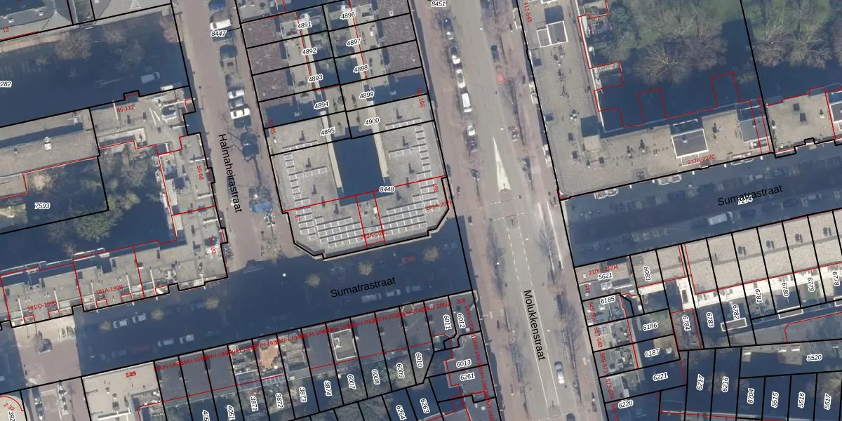 Sumatrastraat 201-C is gelegen op kadastraal perceel ASD19W8448. Deze kadastrale aanduiding is uniek en wordt gebruikt door het Kadaster om eigendomsrechten en andere zakelijke rechten vast te leggen. Het perceel maakt onderdeel uit van de kadastrale gemeente Amsterdam.