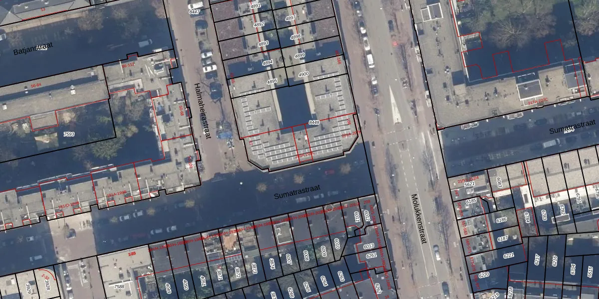 Sumatrastraat 203-D is gelegen op kadastraal perceel ASD19W8448. Deze kadastrale aanduiding is uniek en wordt gebruikt door het Kadaster om eigendomsrechten en andere zakelijke rechten vast te leggen. Het perceel maakt onderdeel uit van de kadastrale gemeente Amsterdam.