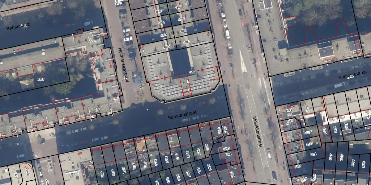 Sumatrastraat 207-T is gelegen op kadastraal perceel ASD19W8448. Deze kadastrale aanduiding is uniek en wordt gebruikt door het Kadaster om eigendomsrechten en andere zakelijke rechten vast te leggen. Het perceel maakt onderdeel uit van de kadastrale gemeente Amsterdam.