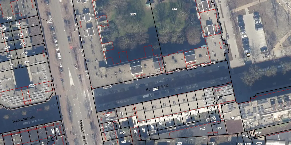 Sumatrastraat 221-A is gelegen op kadastraal perceel ASD19W7270. Deze kadastrale aanduiding is uniek en wordt gebruikt door het Kadaster om eigendomsrechten en andere zakelijke rechten vast te leggen. Het perceel maakt onderdeel uit van de kadastrale gemeente Amsterdam.