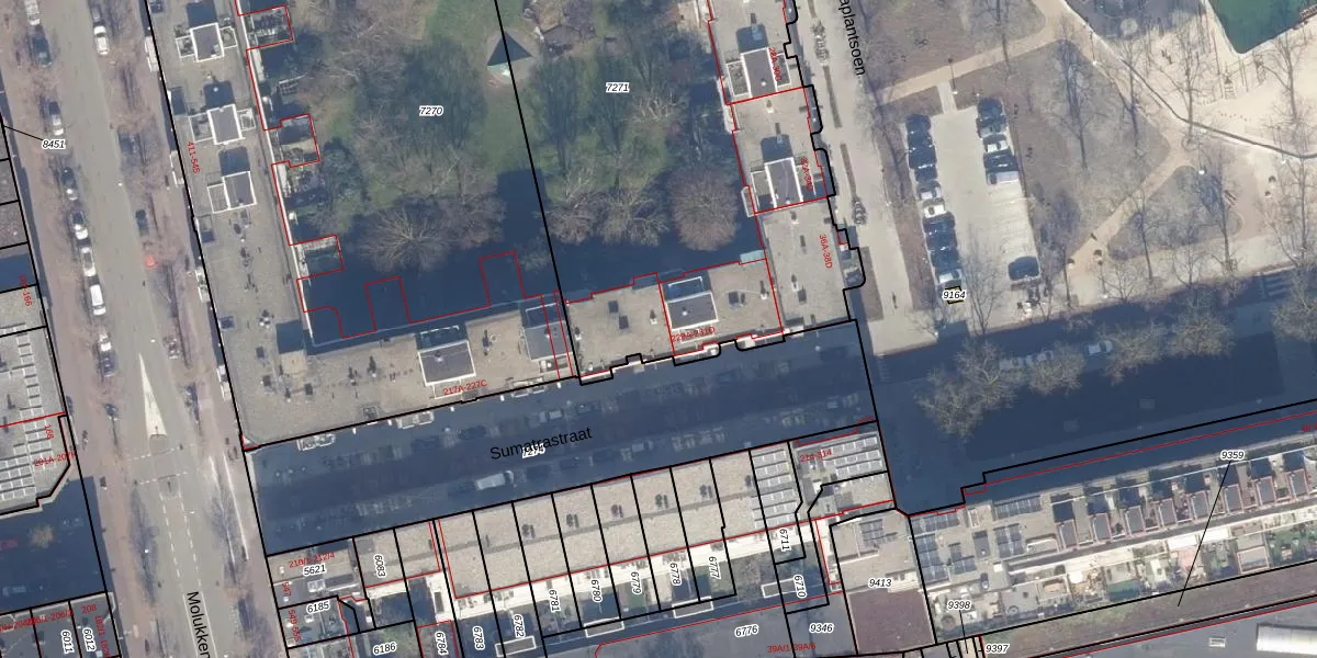 Sumatrastraat 227-C is gelegen op kadastraal perceel ASD19W7271. Deze kadastrale aanduiding is uniek en wordt gebruikt door het Kadaster om eigendomsrechten en andere zakelijke rechten vast te leggen. Het perceel maakt onderdeel uit van de kadastrale gemeente Amsterdam.
