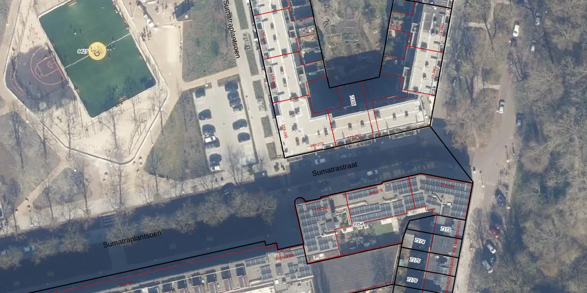 Het perceel waarop Sumatrastraat 235 staat heeft een oppervlakte van 2475 m². Dit is een zeer groot perceel. De perceeloppervlakte wordt geregistreerd door het Kadaster. Gedetailleerde informatie over de maten van dit perceel kunt u vinden in het rapport Kadastrale kaart met maatvoering van Sumatrastraat 235.