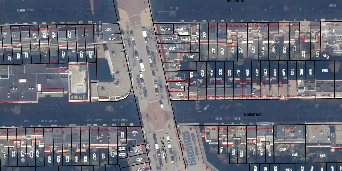 Het perceel waarop Sumatrastraat 45-H staat heeft een oppervlakte van 67 m². Dit is een klein perceel. De perceeloppervlakte wordt geregistreerd door het Kadaster. Gedetailleerde informatie over de maten van dit perceel kunt u vinden in het rapport Kadastrale kaart met maatvoering van Sumatrastraat 45-H.