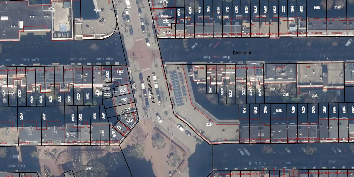 Sumatrastraat 55-A is gelegen op kadastraal perceel ASD15S8997. Deze kadastrale aanduiding is uniek en wordt gebruikt door het Kadaster om eigendomsrechten en andere zakelijke rechten vast te leggen. Het perceel maakt onderdeel uit van de kadastrale gemeente Amsterdam.