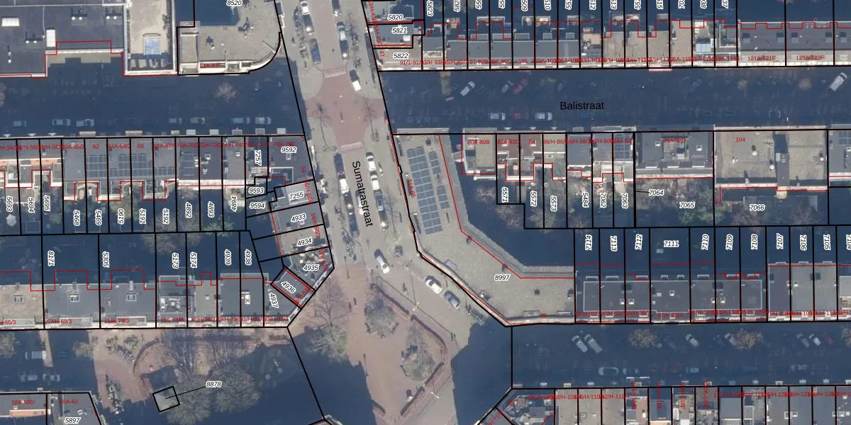Sumatrastraat 57-G is gelegen op kadastraal perceel ASD15S8997. Deze kadastrale aanduiding is uniek en wordt gebruikt door het Kadaster om eigendomsrechten en andere zakelijke rechten vast te leggen. Het perceel maakt onderdeel uit van de kadastrale gemeente Amsterdam.