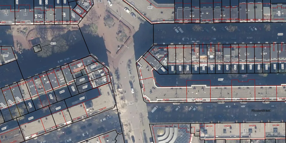 Het perceel waarop het adres ligt is ASD15-S-8457. De afkorting 'ASD15' staat voor kadastrale gemeente Amsterdam. De oppervlakte van het perceel is 2181 m². Dat is groter dan gemiddeld in Amsterdam, waar de gemiddelde perceeloppervlakte op 537,06 m² ligt. De grootste perceeloppervlakte in de kadastrale gemeente is 14,5 ha. De kleinste oppervlakte bedraagt 0 m². Op het perceel zijn 64 adressen aanwezig. De laatste wijziging in het de Basisregistratie Kadaster (BRK) was op 20-10-2006.