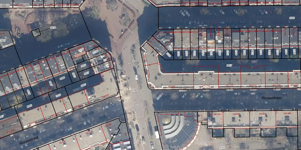 Het perceel waarop het adres ligt is ASD15-S-8457. De afkorting 'ASD15' staat voor kadastrale gemeente Amsterdam. De oppervlakte van het perceel is 2181 m². Dat is groter dan gemiddeld in Amsterdam, waar de gemiddelde perceeloppervlakte op 537,06 m² ligt. De grootste perceeloppervlakte in de kadastrale gemeente is 14,5 ha. De kleinste oppervlakte bedraagt 0 m². Op het perceel zijn 64 adressen aanwezig. De laatste wijziging in het de Basisregistratie Kadaster (BRK) was op 20-10-2006.