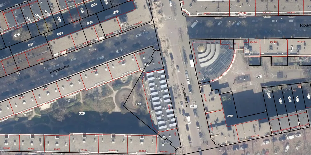 Sumatrastraat 86-C is gelegen op kadastraal perceel ASD15S8392. Deze kadastrale aanduiding is uniek en wordt gebruikt door het Kadaster om eigendomsrechten en andere zakelijke rechten vast te leggen. Het perceel maakt onderdeel uit van de kadastrale gemeente Amsterdam.