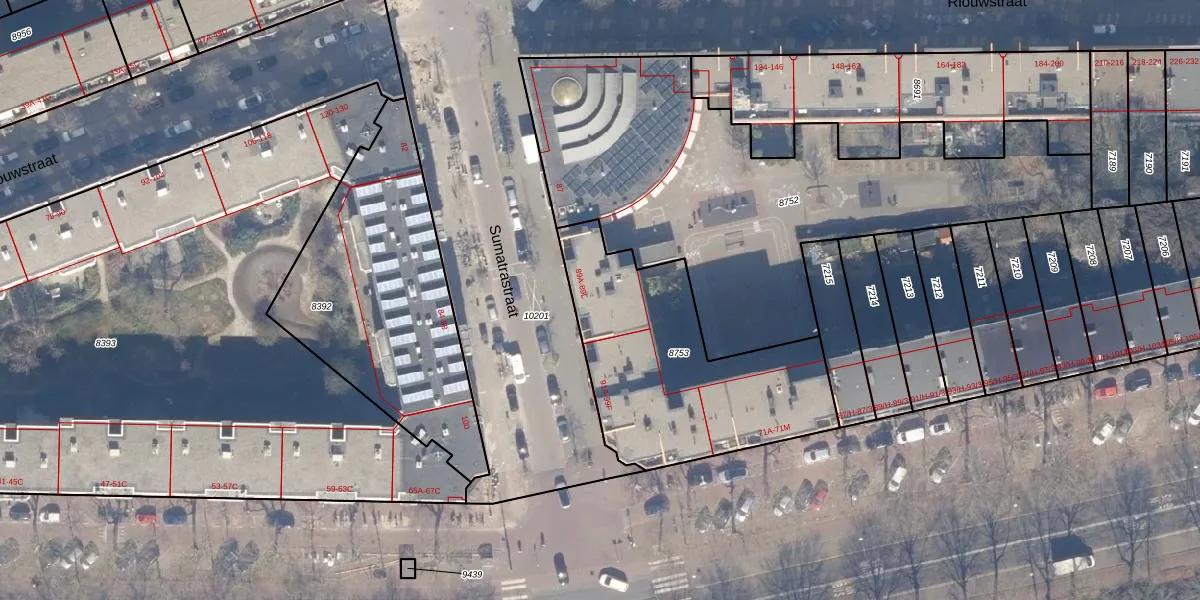 Sumatrastraat 89-F is gelegen op kadastraal perceel ASD15S8753. Deze kadastrale aanduiding is uniek en wordt gebruikt door het Kadaster om eigendomsrechten en andere zakelijke rechten vast te leggen. Het perceel maakt onderdeel uit van de kadastrale gemeente Amsterdam.