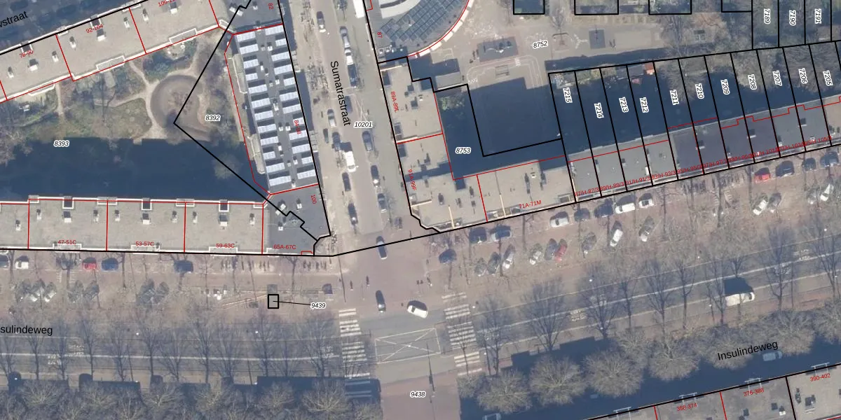 Sumatrastraat 99-A is gelegen op kadastraal perceel ASD15S8753. Deze kadastrale aanduiding is uniek en wordt gebruikt door het Kadaster om eigendomsrechten en andere zakelijke rechten vast te leggen. Het perceel maakt onderdeel uit van de kadastrale gemeente Amsterdam.