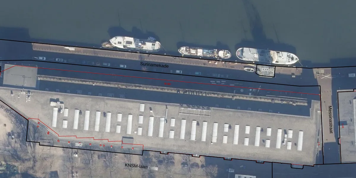 Het perceel waarop Surinamekade 21 staat heeft een oppervlakte van 8065 m². Dit is een zeer groot perceel. De perceeloppervlakte wordt geregistreerd door het Kadaster. Gedetailleerde informatie over de maten van dit perceel kunt u vinden in het rapport Kadastrale kaart met maatvoering van Surinamekade 21.