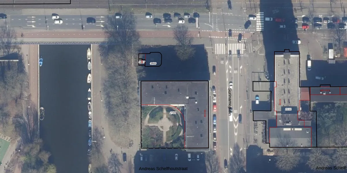 Het perceel waarop Surinameplein 113 staat heeft een oppervlakte van 1505 m². Dit is een zeer groot perceel. De perceeloppervlakte wordt geregistreerd door het Kadaster. Gedetailleerde informatie over de maten van dit perceel kunt u vinden in het rapport Kadastrale kaart met maatvoering van Surinameplein 113.