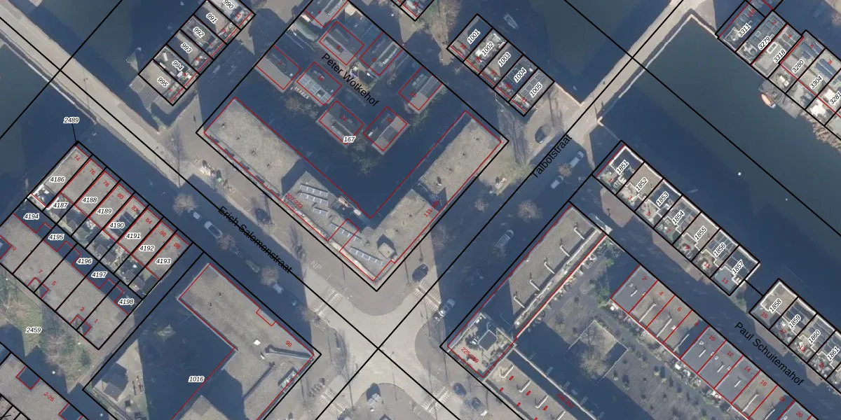 Het adres is gelegen op perceel 167 in de sectie AU en de kadastrale gemeente Amsterdam. De kadastrale aanduiding is aldus ASD41-AU-167. De gemiddelde perceelgrootte in Amsterdam is 7280,73 m². Dit perceel is kleiner: de perceeloppervlakte bedraagt 2723 m². Het kleinste perceel in de kadastrale gemeente is 0 m² groot. De grootste perceeloppervlakte is 2,75 km². Op het perceel liggen in totaal 45 adressen. In de Basisregistratie Kadaster (BRK) werden de grenzen van het perceel geregistreerd op 26-06-2006.