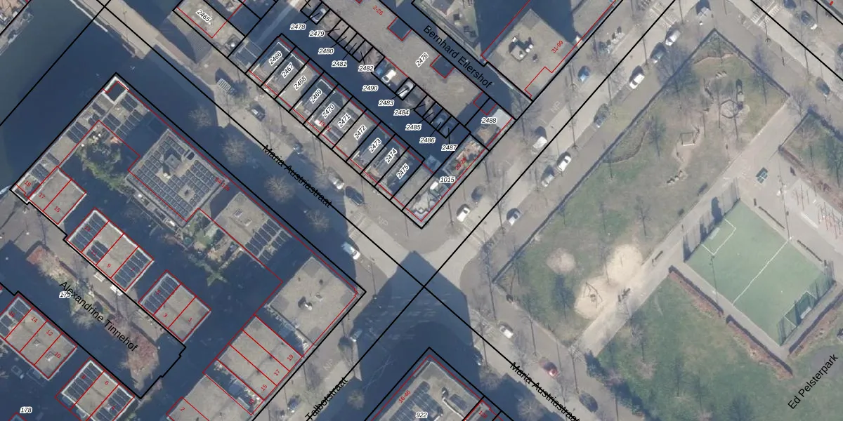 Het adres is gelegen op perceel 1015 in de sectie AU en de kadastrale gemeente Amsterdam. De kadastrale aanduiding is aldus ASD41-AU-1015. Het perceel is kleiner dan gemiddeld in Amsterdam. Het perceel is 155 m² groot, terwijl het gemiddelde ligt op 7280,73 m². Het kleinste perceel in de kadastrale gemeente is 0 m² groot. De grootste perceeloppervlakte is 2,75 km². Op het perceel zijn 3 adressen aanwezig. De huidige grenzen van het perceel zijn digitaal in de Basisregistratie Kadaster (BRK) geregistreerd op 20-04-2010.
