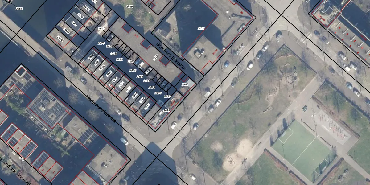 Het adres is gelegen op perceel 2488 in de sectie AU en de kadastrale gemeente Amsterdam. De kadastrale aanduiding is aldus ASD41-AU-2488. Het perceel is kleiner dan gemiddeld in Amsterdam. Het perceel is 79 m² groot, terwijl het gemiddelde ligt op 7280,73 m². Het kleinste perceel in de kadastrale gemeente is 0 m² groot. De grootste perceeloppervlakte is 2,75 km². Er zijn geen andere adressen aanwezig op het perceel. De huidige grenzen van het perceel zijn digitaal in de Basisregistratie Kadaster (BRK) geregistreerd op 20-04-2010.
