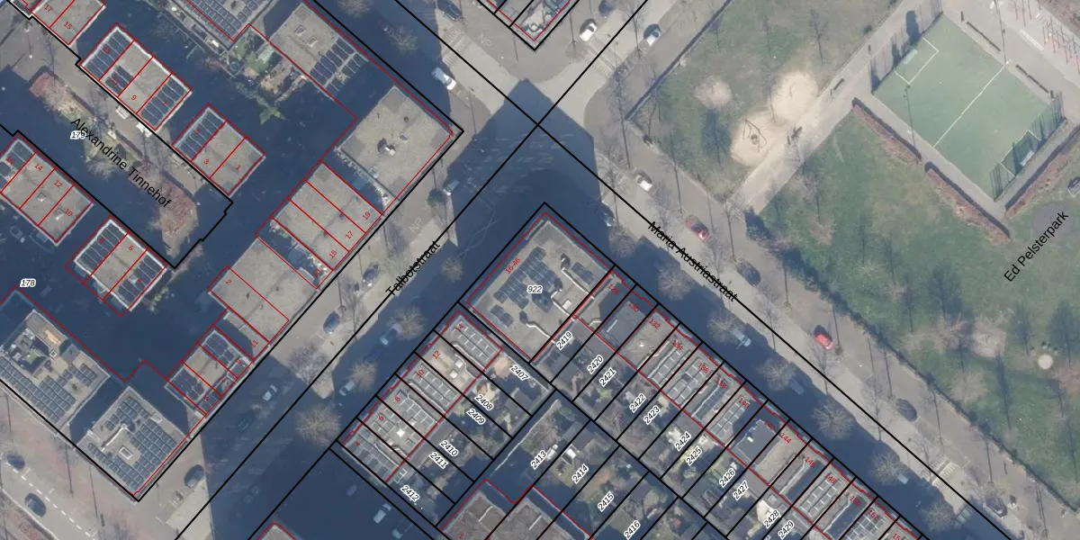 Het perceel waarop Talbotstraat 40 staat heeft een oppervlakte van 425 m². Dit is een groot perceel. De perceeloppervlakte wordt geregistreerd door het Kadaster. Gedetailleerde informatie over de maten van dit perceel kunt u vinden in het rapport Kadastrale kaart met maatvoering van Talbotstraat 40.