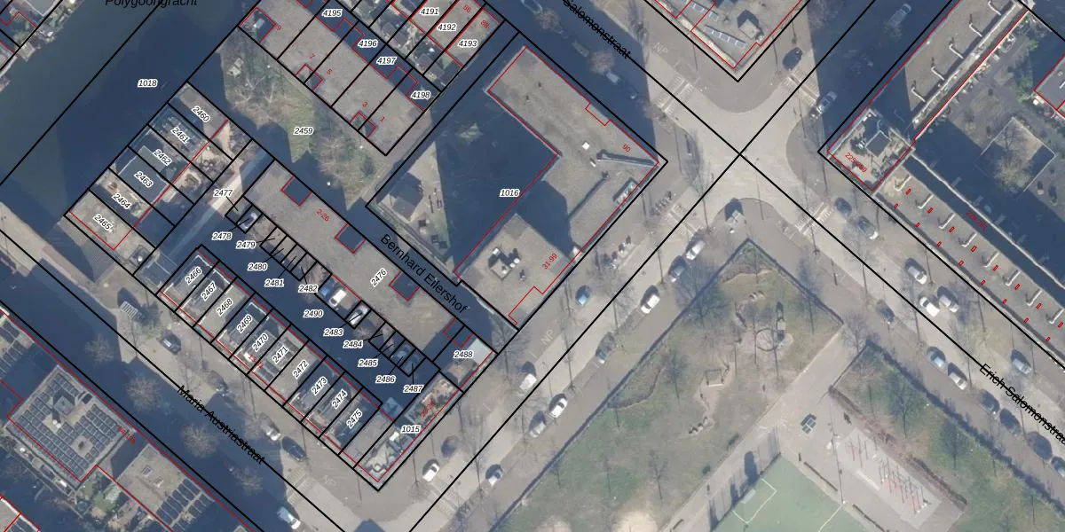Het adres is gelegen op perceel 1016 in de sectie AU en de kadastrale gemeente Amsterdam. De kadastrale aanduiding is aldus ASD41-AU-1016. Het perceel is kleiner dan gemiddeld in Amsterdam. Het perceel is 1600 m² groot, terwijl het gemiddelde ligt op 7280,73 m². Het kleinste perceel in de kadastrale gemeente is 0 m² groot. De grootste perceeloppervlakte is 2,75 km². Op het perceel liggen in totaal 36 adressen. De huidige grenzen van het perceel zijn digitaal in de Basisregistratie Kadaster (BRK) geregistreerd op 20-04-2010.