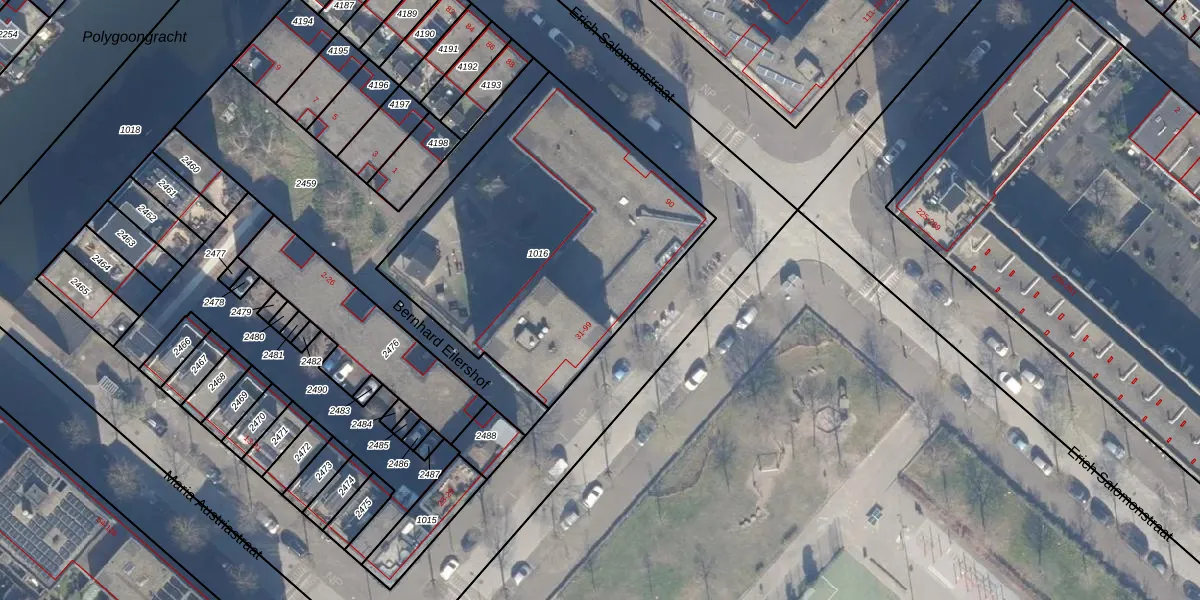 Het adres is gelegen op perceel 1016 in de sectie AU en de kadastrale gemeente Amsterdam. De kadastrale aanduiding is aldus ASD41-AU-1016. Het perceel is kleiner dan gemiddeld in Amsterdam. Het perceel is 1600 m² groot, terwijl het gemiddelde ligt op 7280,73 m². Het kleinste perceel in de kadastrale gemeente is 0 m² groot. De grootste perceeloppervlakte is 2,75 km². Er zijn 36 adressen aanwezig op het perceel. De huidige grenzen van het perceel zijn digitaal in de Basisregistratie Kadaster (BRK) geregistreerd op 20-04-2010.