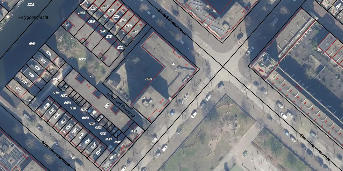 Het adres is gelegen op perceel 1016 in de sectie AU en de kadastrale gemeente Amsterdam. De kadastrale aanduiding is aldus ASD41-AU-1016. Het perceel is kleiner dan gemiddeld in Amsterdam. Het perceel is 1600 m² groot, terwijl het gemiddelde ligt op 7280,73 m². Het kleinste perceel in de kadastrale gemeente is 0 m² groot. De grootste perceeloppervlakte is 2,75 km². Er zijn 36 adressen aanwezig op het perceel. De huidige grenzen van het perceel zijn digitaal in de Basisregistratie Kadaster (BRK) geregistreerd op 20-04-2010.