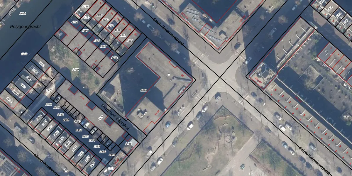 Het adres is gelegen op perceel 1016 in de sectie AU en de kadastrale gemeente Amsterdam. De kadastrale aanduiding is aldus ASD41-AU-1016. Het perceel is kleiner dan gemiddeld in Amsterdam. Het perceel is 1600 m² groot, terwijl het gemiddelde ligt op 7280,73 m². Het kleinste perceel in de kadastrale gemeente is 0 m² groot. De grootste perceeloppervlakte is 2,75 km². Op het perceel zijn 36 adressen aanwezig. In de Basisregistratie Kadaster (BRK) werden de grenzen van het perceel geregistreerd op 20-04-2010.