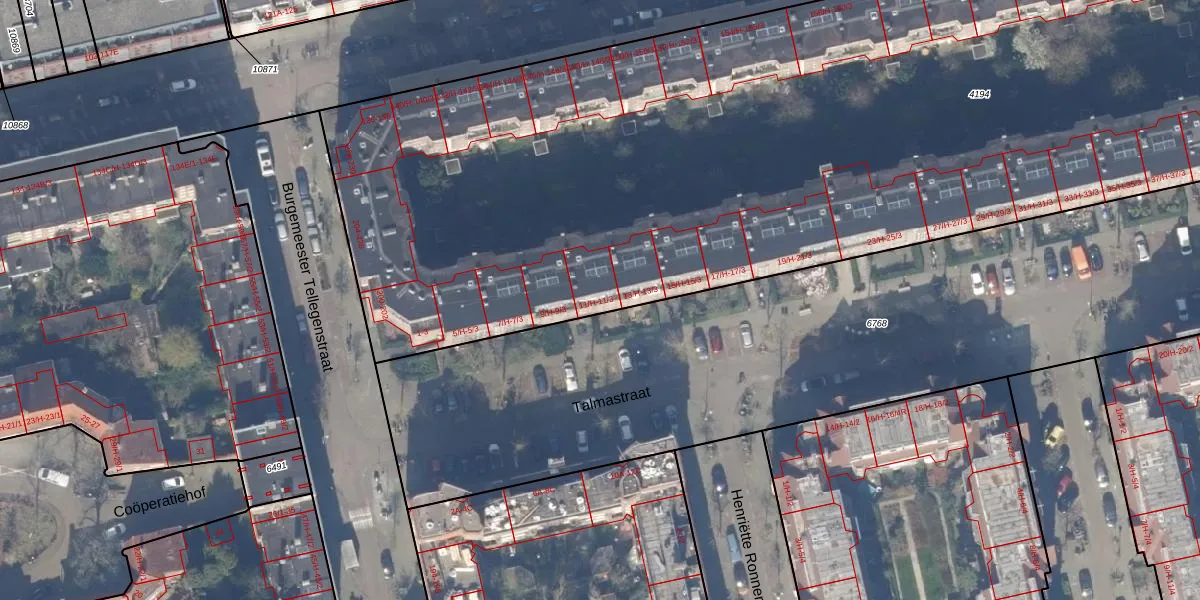 Talmastraat 11-2 is gelegen op kadastraal perceel ASD18V4194. Deze kadastrale aanduiding is uniek en wordt gebruikt door het Kadaster om eigendomsrechten en andere zakelijke rechten vast te leggen. Het perceel maakt onderdeel uit van de kadastrale gemeente Amsterdam.