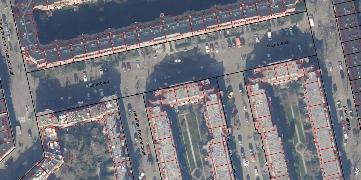 Talmastraat 16-4L is gelegen op kadastraal perceel ASD18V4708. Deze kadastrale aanduiding is uniek en wordt gebruikt door het Kadaster om eigendomsrechten en andere zakelijke rechten vast te leggen. Het perceel maakt onderdeel uit van de kadastrale gemeente Amsterdam.