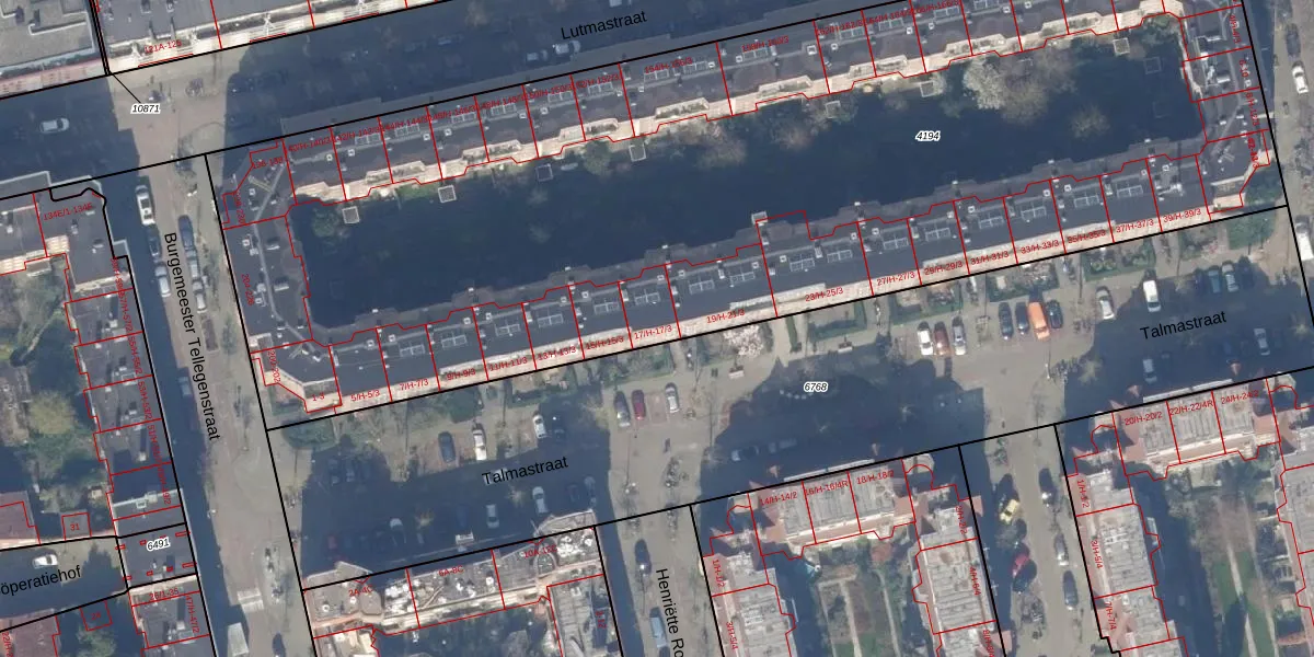 Talmastraat 17-1 is gelegen op kadastraal perceel ASD18V4194. Deze kadastrale aanduiding is uniek en wordt gebruikt door het Kadaster om eigendomsrechten en andere zakelijke rechten vast te leggen. Het perceel maakt onderdeel uit van de kadastrale gemeente Amsterdam.
