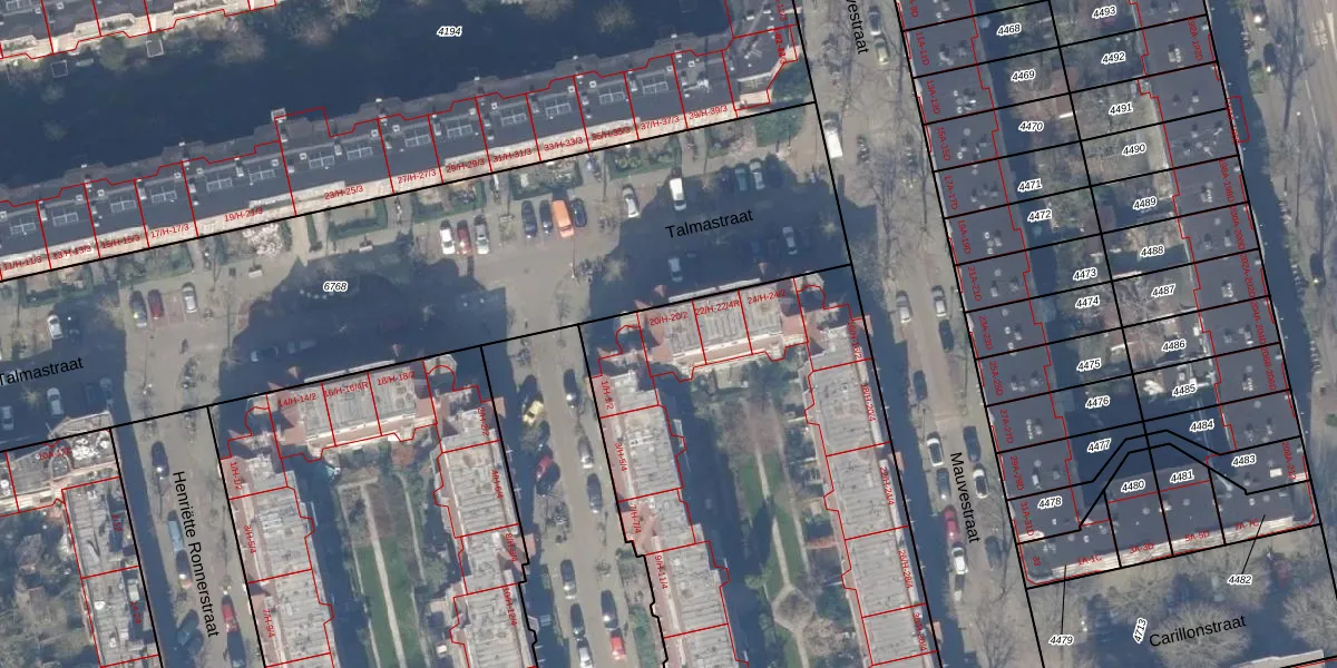 Talmastraat 20-H is gelegen op kadastraal perceel ASD18V4710. Deze kadastrale aanduiding is uniek en wordt gebruikt door het Kadaster om eigendomsrechten en andere zakelijke rechten vast te leggen. Het perceel maakt onderdeel uit van de kadastrale gemeente Amsterdam.