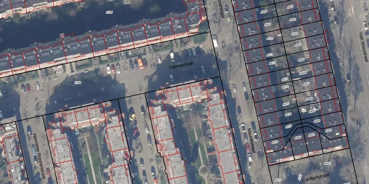 Talmastraat 22-H is gelegen op kadastraal perceel ASD18V4710. Deze kadastrale aanduiding is uniek en wordt gebruikt door het Kadaster om eigendomsrechten en andere zakelijke rechten vast te leggen. Het perceel maakt onderdeel uit van de kadastrale gemeente Amsterdam.