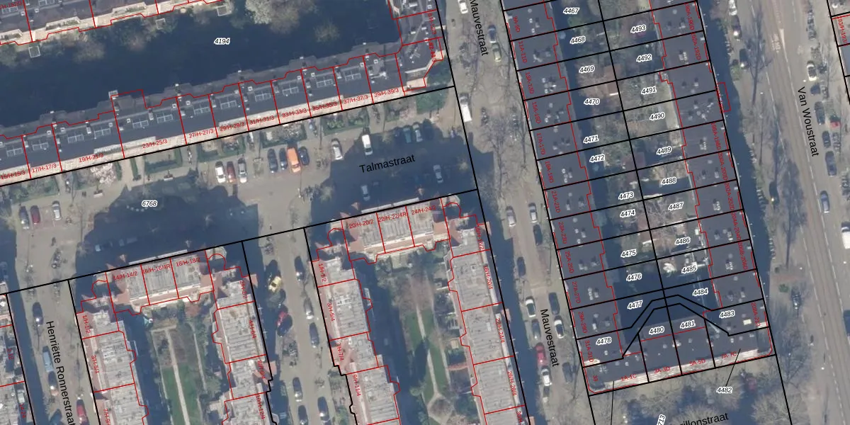 Talmastraat 24-2 is gelegen op kadastraal perceel ASD18V4710. Deze kadastrale aanduiding is uniek en wordt gebruikt door het Kadaster om eigendomsrechten en andere zakelijke rechten vast te leggen. Het perceel maakt onderdeel uit van de kadastrale gemeente Amsterdam.