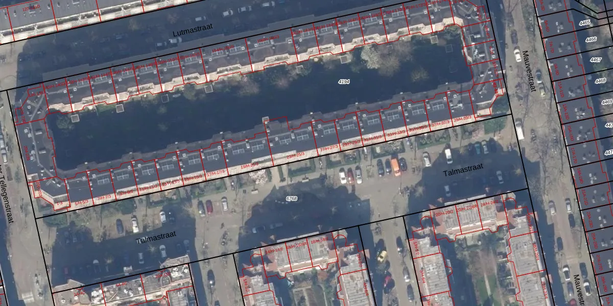 Talmastraat 25-1 is gelegen op kadastraal perceel ASD18V4194. Deze kadastrale aanduiding is uniek en wordt gebruikt door het Kadaster om eigendomsrechten en andere zakelijke rechten vast te leggen. Het perceel maakt onderdeel uit van de kadastrale gemeente Amsterdam.