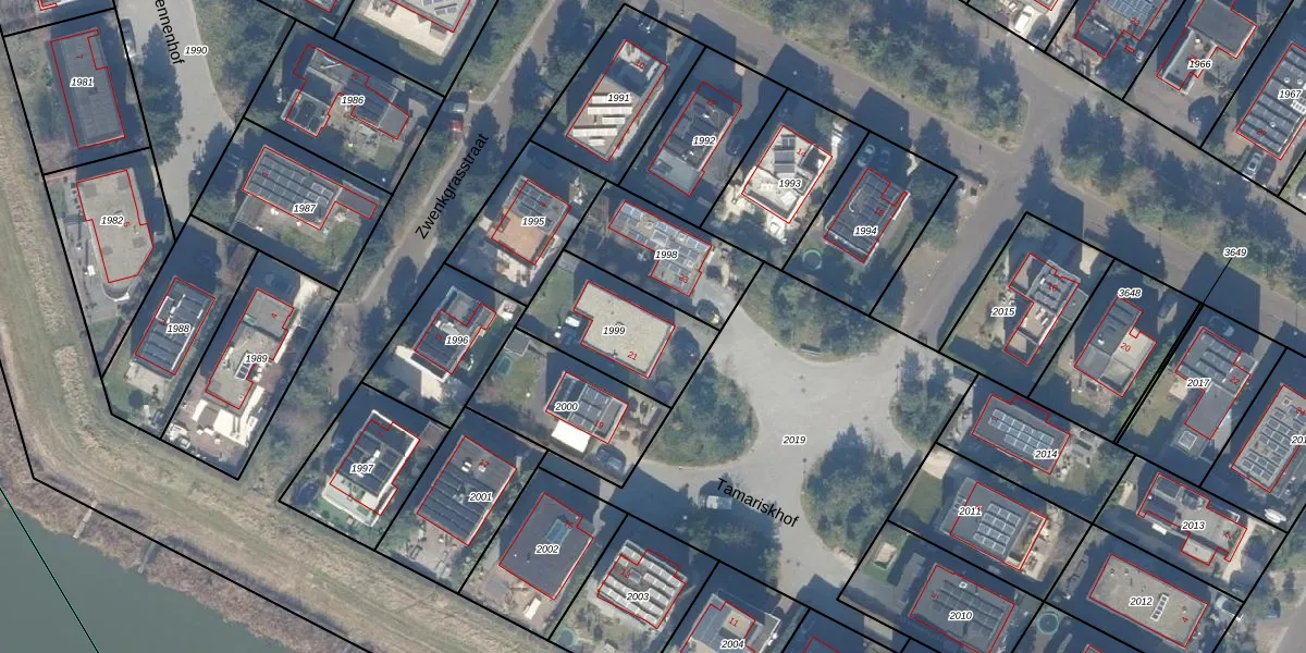Het perceel waarop Tamariskhof 21 staat heeft een oppervlakte van 379 m². Dit is een groot perceel. De perceeloppervlakte wordt geregistreerd door het Kadaster. Gedetailleerde informatie over de maten van dit perceel kunt u vinden in het rapport Kadastrale kaart met maatvoering van Tamariskhof 21.