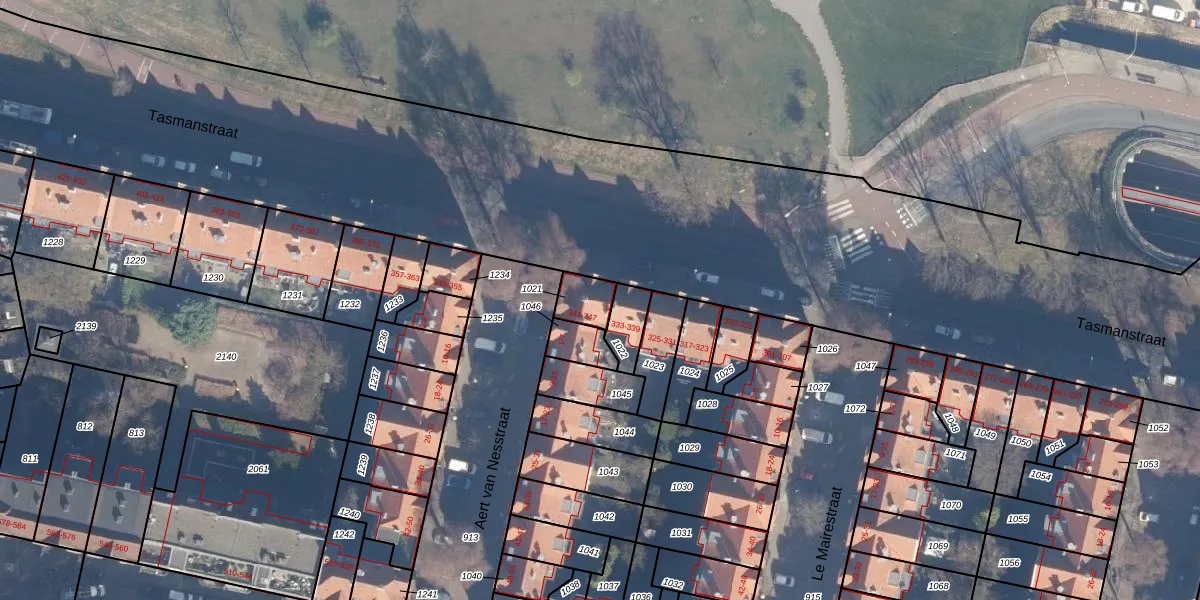 Tasmanstraat 343 is gelegen op kadastraal perceel ASD20X1021. Deze kadastrale aanduiding is uniek en wordt gebruikt door het Kadaster om eigendomsrechten en andere zakelijke rechten vast te leggen. Het perceel maakt onderdeel uit van de kadastrale gemeente Amsterdam.