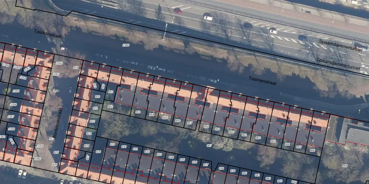 Het perceel waarop Tasmanstraat 37-2V staat heeft een oppervlakte van 163 m². Dit is een middelgroot perceel. De perceeloppervlakte wordt geregistreerd door het Kadaster. Gedetailleerde informatie over de maten van dit perceel kunt u vinden in het rapport Kadastrale kaart met maatvoering van Tasmanstraat 37-2V.