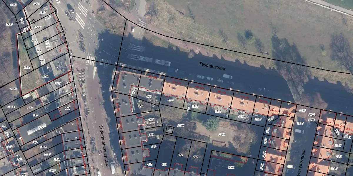Tasmanstraat 423 is gelegen op kadastraal perceel ASD20X1228. Deze kadastrale aanduiding is uniek en wordt gebruikt door het Kadaster om eigendomsrechten en andere zakelijke rechten vast te leggen. Het perceel maakt onderdeel uit van de kadastrale gemeente Amsterdam.