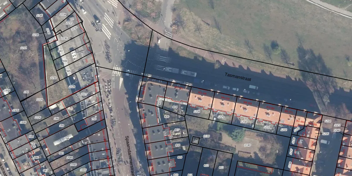 Het perceel waarop Tasmanstraat 447 staat heeft een oppervlakte van 228 m². Dit is een middelgroot perceel. De perceeloppervlakte wordt geregistreerd door het Kadaster. Gedetailleerde informatie over de maten van dit perceel kunt u vinden in het rapport Kadastrale kaart met maatvoering van Tasmanstraat 447.