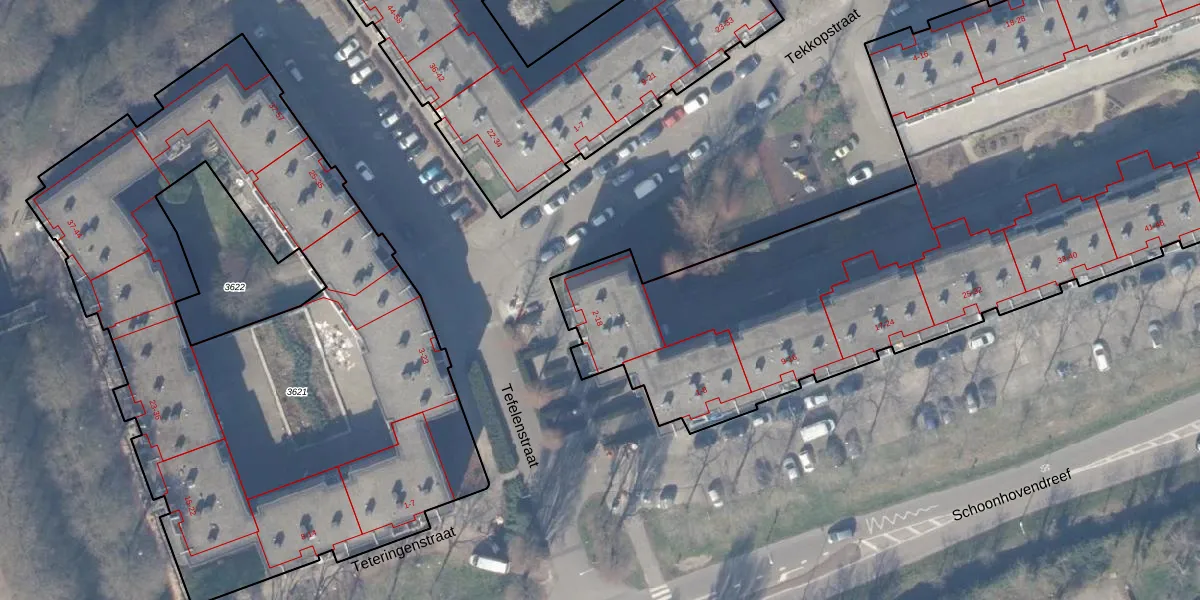 Het perceel waarop Tefelenstraat 14 staat heeft een oppervlakte van 9940 m². Dit is een zeer groot perceel. De perceeloppervlakte wordt geregistreerd door het Kadaster. Gedetailleerde informatie over de maten van dit perceel kunt u vinden in het rapport Kadastrale kaart met maatvoering van Tefelenstraat 14.