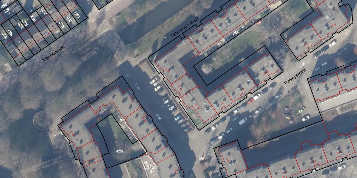 Tefelenstraat 36 is gelegen op kadastraal perceel WPK02L3623. Deze kadastrale aanduiding is uniek en wordt gebruikt door het Kadaster om eigendomsrechten en andere zakelijke rechten vast te leggen. Het perceel maakt onderdeel uit van de kadastrale gemeente Weesperkarspel.