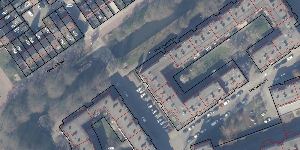 Tefelenstraat 54 is gelegen op kadastraal perceel WPK02L3623. Deze kadastrale aanduiding is uniek en wordt gebruikt door het Kadaster om eigendomsrechten en andere zakelijke rechten vast te leggen. Het perceel maakt onderdeel uit van de kadastrale gemeente Weesperkarspel.