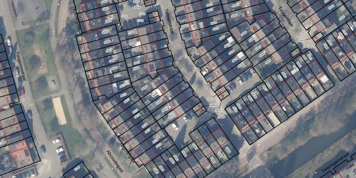 Het perceel waarop Tefelenstraat 69 staat heeft een oppervlakte van 135 m². Dit is een middelgroot perceel. De perceeloppervlakte wordt geregistreerd door het Kadaster. Gedetailleerde informatie over de maten van dit perceel kunt u vinden in het rapport Kadastrale kaart met maatvoering van Tefelenstraat 69.