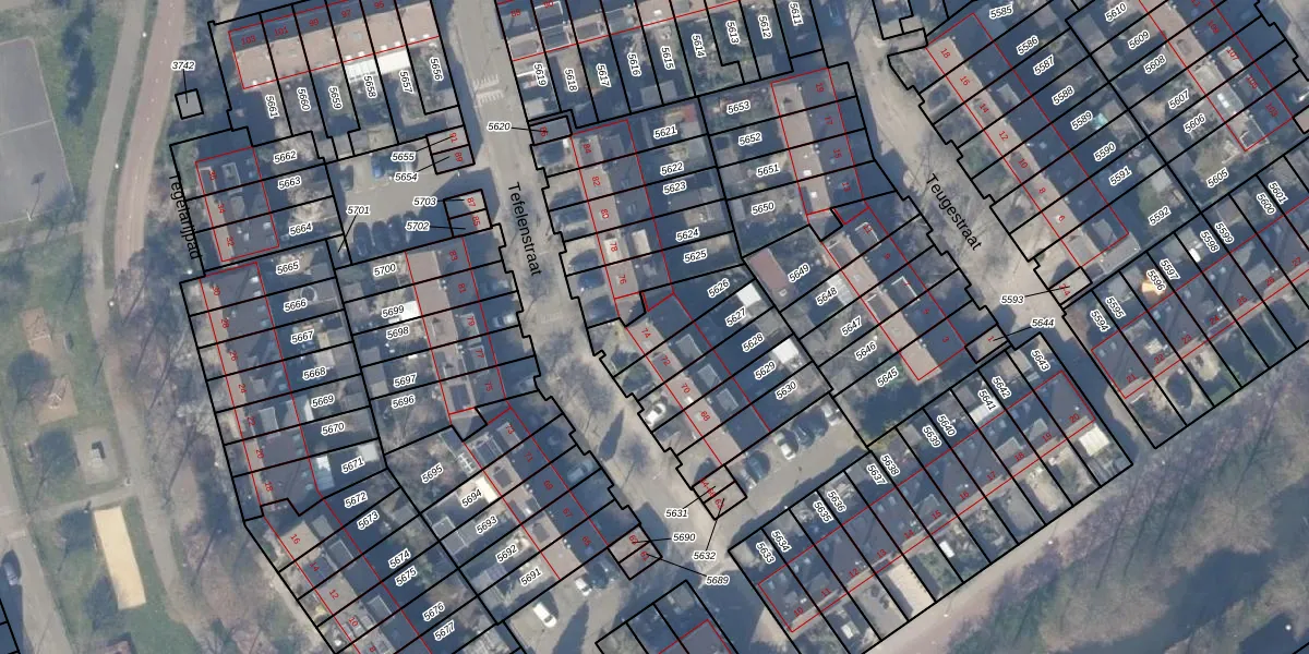 Het perceel waarop Tefelenstraat 74 staat heeft een oppervlakte van 160 m². Dit is een middelgroot perceel. De perceeloppervlakte wordt geregistreerd door het Kadaster. Gedetailleerde informatie over de maten van dit perceel kunt u vinden in het rapport Kadastrale kaart met maatvoering van Tefelenstraat 74.