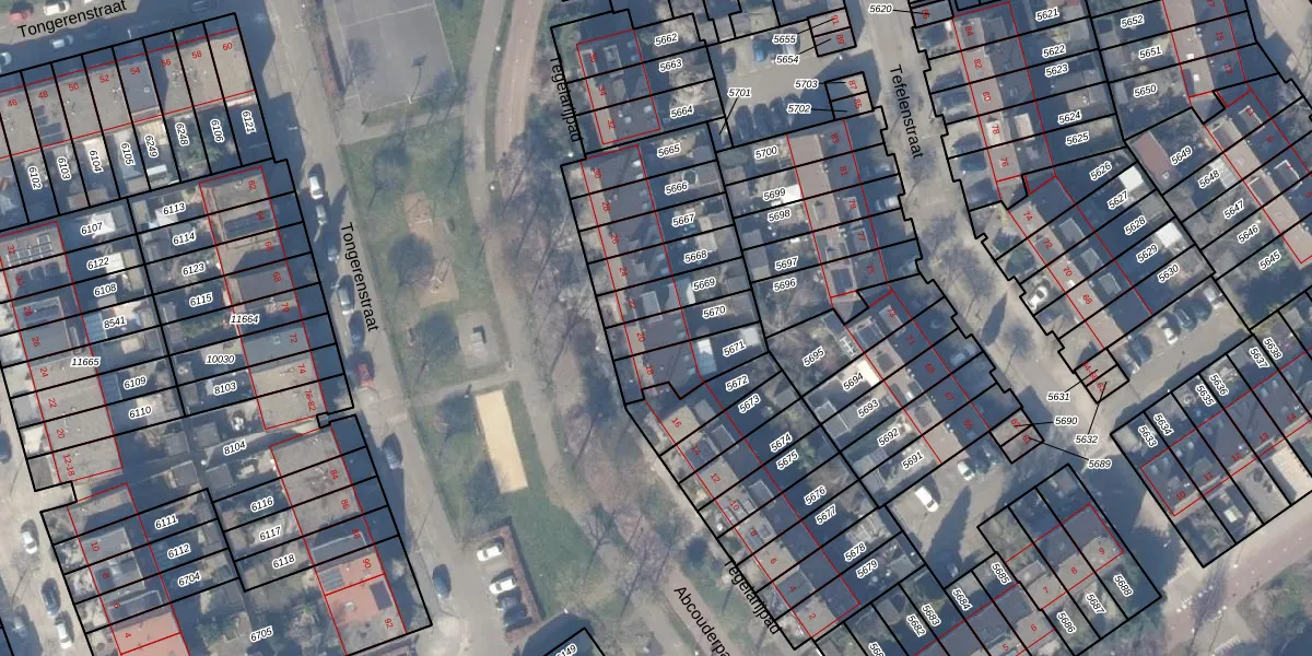 Gebruik de zoekbalk of klik op een perceel voor informatie over de adressen binnen dit perceel.