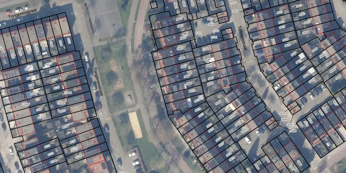 Gebruik de zoekbalk of klik op een perceel voor informatie over de adressen binnen dit perceel.