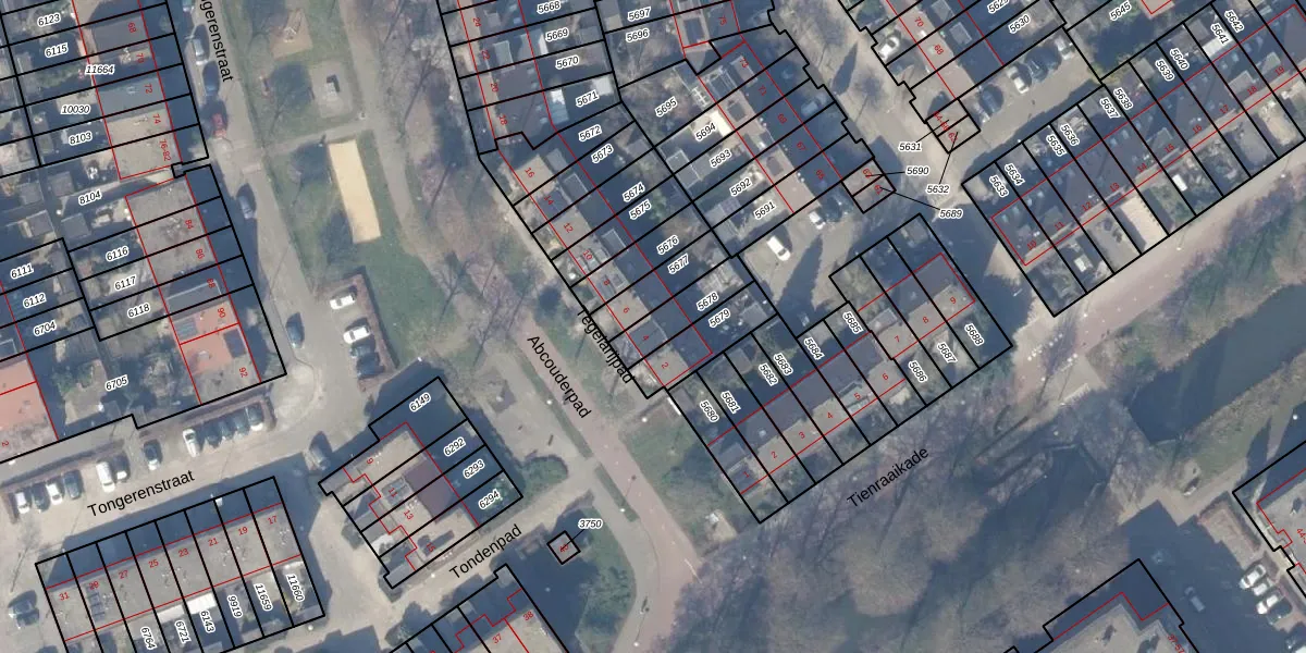 Gebruik de zoekbalk of klik op een perceel voor informatie over de adressen binnen dit perceel.