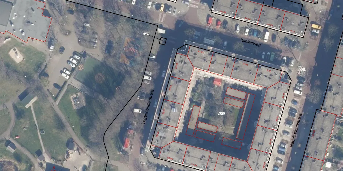 Het perceel waarop Tegenhouderstraat 47 staat heeft een oppervlakte van 4695 m². Dit is een zeer groot perceel. De perceeloppervlakte wordt geregistreerd door het Kadaster. Gedetailleerde informatie over de maten van dit perceel kunt u vinden in het rapport Kadastrale kaart met maatvoering van Tegenhouderstraat 47.