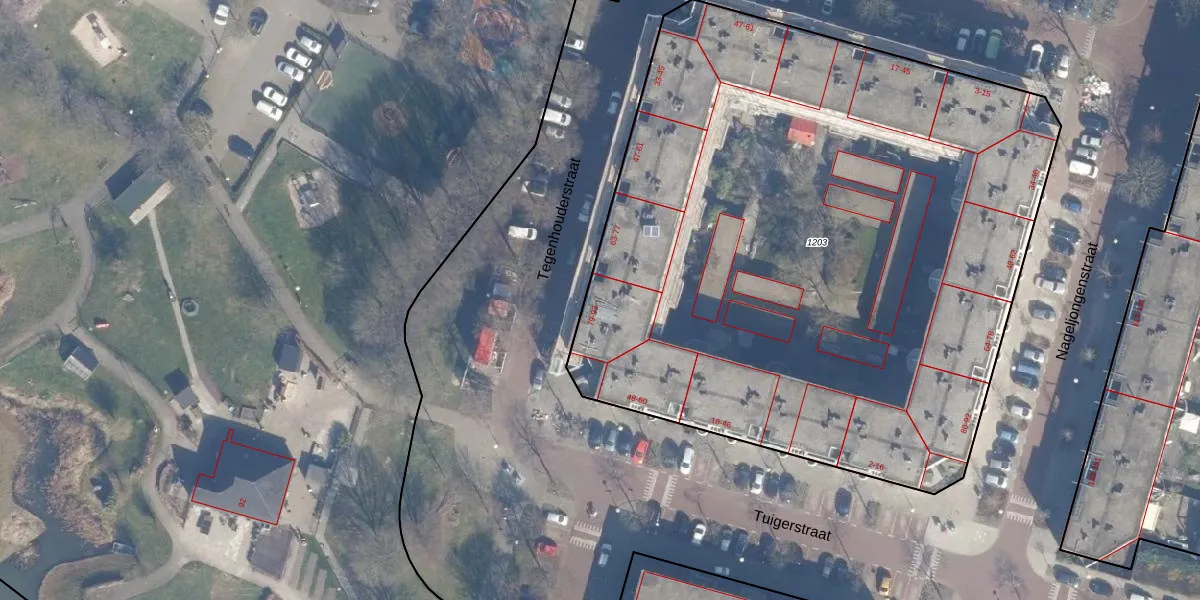 Het perceel waarop Tegenhouderstraat 83 staat heeft een oppervlakte van 4695 m². Dit is een zeer groot perceel. De perceeloppervlakte wordt geregistreerd door het Kadaster. Gedetailleerde informatie over de maten van dit perceel kunt u vinden in het rapport Kadastrale kaart met maatvoering van Tegenhouderstraat 83.