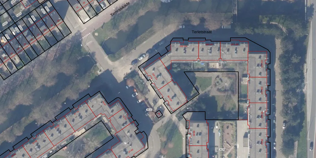 Tekkopstraat 106 is gelegen op kadastraal perceel WPK02L3624. Deze kadastrale aanduiding is uniek en wordt gebruikt door het Kadaster om eigendomsrechten en andere zakelijke rechten vast te leggen. Het perceel maakt onderdeel uit van de kadastrale gemeente Weesperkarspel.