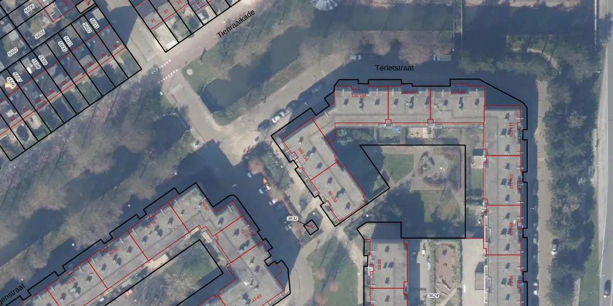 Tekkopstraat 108 is gelegen op kadastraal perceel WPK02L3624. Deze kadastrale aanduiding is uniek en wordt gebruikt door het Kadaster om eigendomsrechten en andere zakelijke rechten vast te leggen. Het perceel maakt onderdeel uit van de kadastrale gemeente Weesperkarspel.