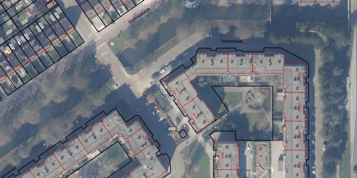 Tekkopstraat 110 is gelegen op kadastraal perceel WPK02L3624. Deze kadastrale aanduiding is uniek en wordt gebruikt door het Kadaster om eigendomsrechten en andere zakelijke rechten vast te leggen. Het perceel maakt onderdeel uit van de kadastrale gemeente Weesperkarspel.