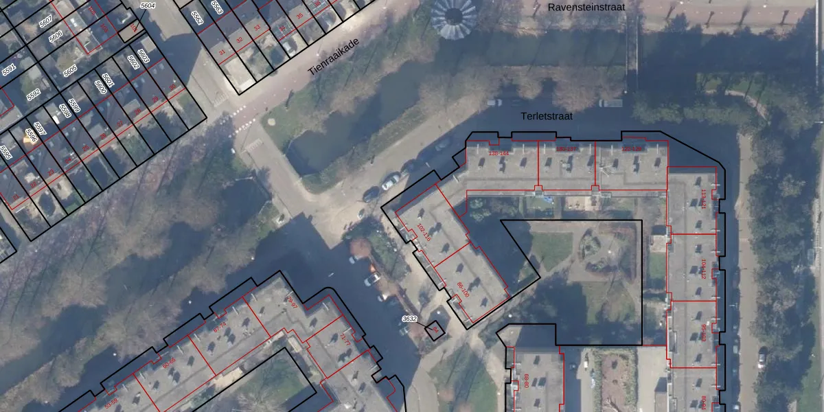 Tekkopstraat 116 is gelegen op kadastraal perceel WPK02L3624. Deze kadastrale aanduiding is uniek en wordt gebruikt door het Kadaster om eigendomsrechten en andere zakelijke rechten vast te leggen. Het perceel maakt onderdeel uit van de kadastrale gemeente Weesperkarspel.